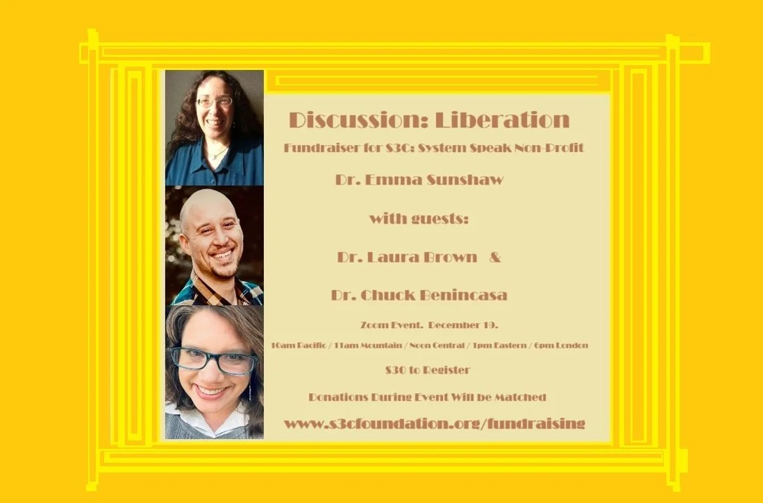 Emma Sunshaw from the System Speak podcast is joined by Laura Brown & Chuck Benincasa in a panel. There is a $30 fee to register for the event, and donations may be made HERE. Donations made during registration and during the event will be matched by an anonymous donor!